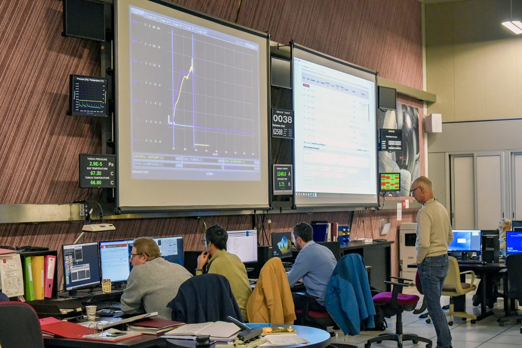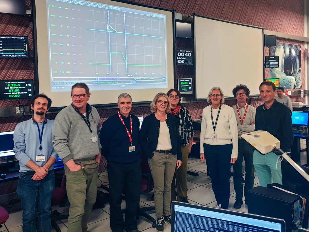 Le 7 novembre, la première expérience de la campagne a été réalisée en collaboration avec ITER. Elle visait à tester la tenue d’un coating tungstène sur des tuiles montées sur des limiteurs internes de WEST.