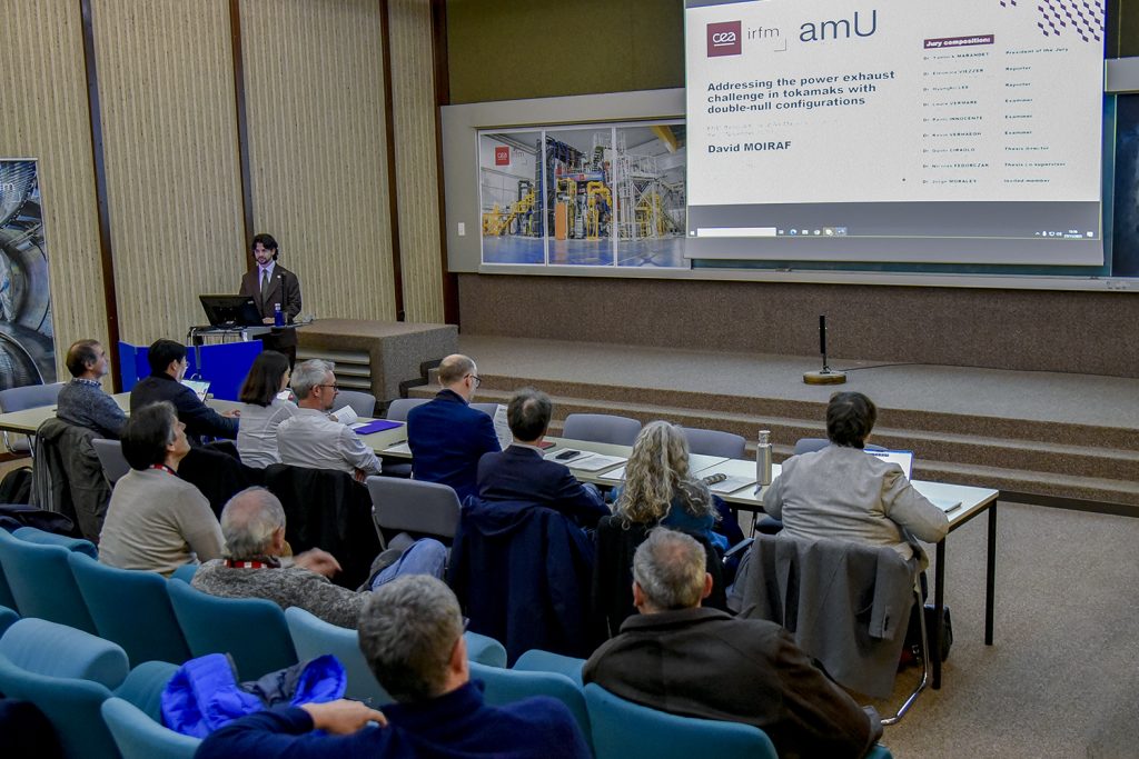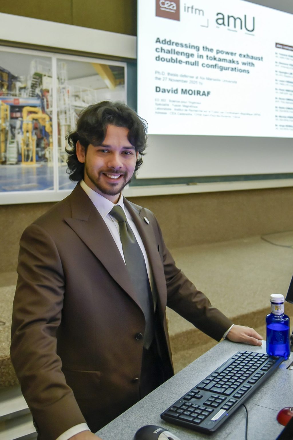 Jeudi 27 novembre, David a présenté ses travaux de recherche consacrés à l’évacuation de la puissance dans les tokamaks. Face aux flux de chaleur extrêmes attendus dans les futures centrales de type DEMO, il a exploré le potentiel des configurations double-null pour distribuer la puissance et dissiper la chaleur du plasma dans le divertor.