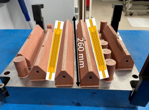 Le projet porté par le CEA a permis d’explorer des concepts alternatifs visant à améliorer l’échange thermique dans le canal de refroidissement, avec comme objectif la réalisation d’un composant final avec une couverture tungstène sous forme de tuile plate (Figure 1), plus aisé à fabriquer. Le choix s’est porté sur des géométries inspirées de l’HyperVapotron [2,3], « diagonal » et « chevron » [4,5], qui ont dû être adaptées aux contraintes de la fabrication par fusion laser sur lit de poudre (angles d’impression, épaisseurs minimales de matière, etc.). Par la réalisation de calculs CFD (Computational Fluid Dynamic), les géométries des promoteurs d’échanges ont pu être définies. Ces maquettes en CuCrZr ont ensuite été fabriquées au LITEN (Figure 2). Une contrainte majeure de la fabrication additive réside dans la porosité résiduelle post-impression qui impacte notamment la capacité d’extraction de chaleur des composants fabriqués par cette technique ainsi que les propriétés mécaniques. Afin de refermer ces porosités, un traitement de compression isostatique à chaud (HIP) a été appliqué. La densité a ainsi pu être augmentée de 98,8 % à 99,8 %. La capacité d’extraction de chaleur des maquettes fabriquées a été testée jusque 25 MW/m² sur l’installation de tests à hauts flux HADES (DRF/IRFM). Aucun endommagement visuel n’a été observé, démontrant ainsi les excellentes performances de ce concept [6] et laissant entrevoir des perspectives très prometteuses pour le composant final.